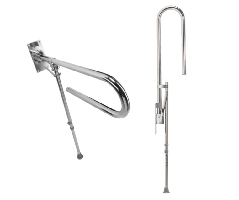 Fold Away Hand Rail with Drop Down Leg - Stainless Steel - (White & Stainless Steel Option)