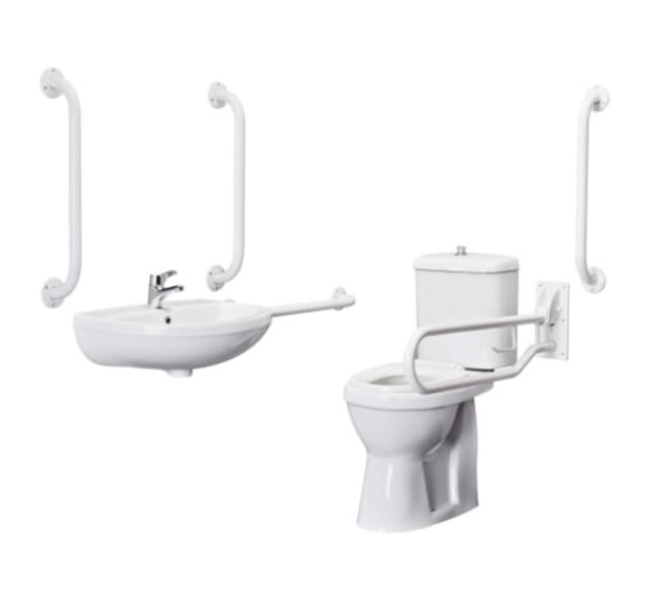 Doc M Pack - Accessible Bathroom Toilet - Basin & Grab Rails - White