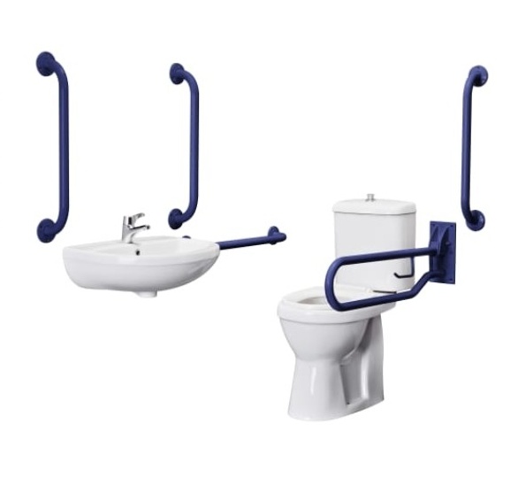 Doc M Pack - Accessible Bathroom Toilet - Basin & Grab Rails - Blue