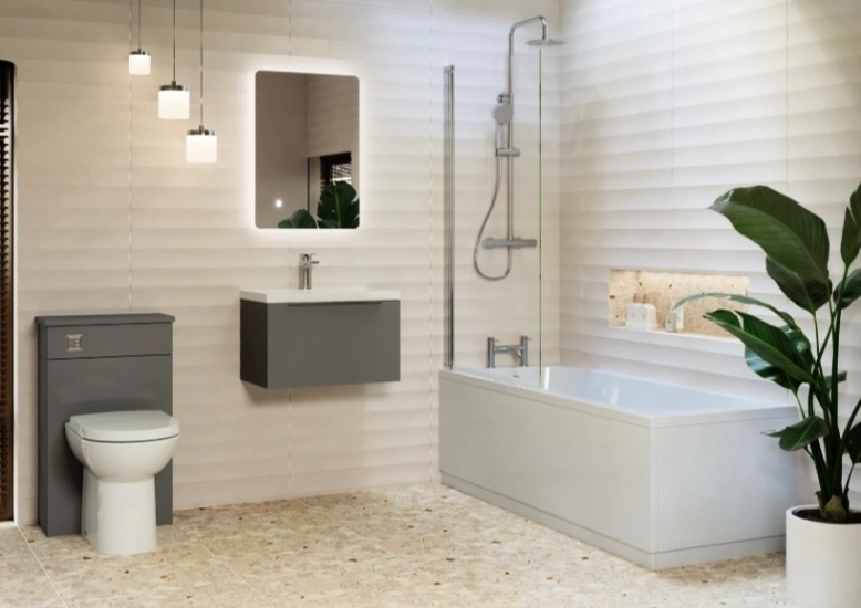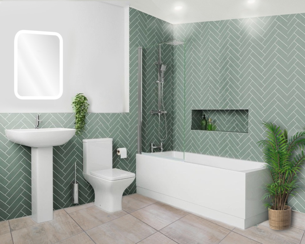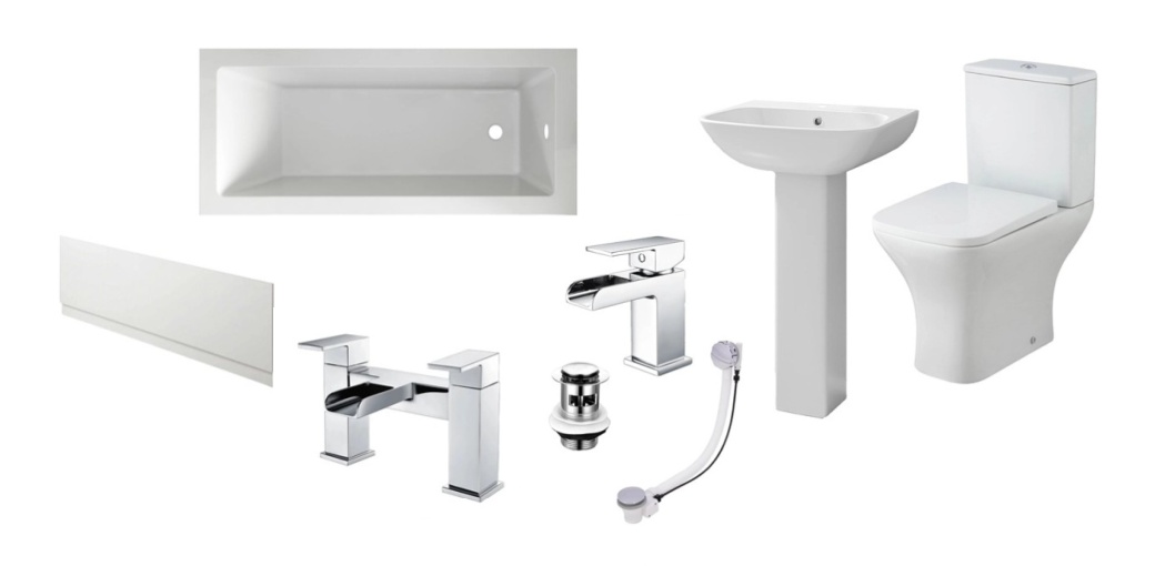 Erin Complete Modern Bathroom Suite with 1700mm Shower Bath & Rimless Toilet